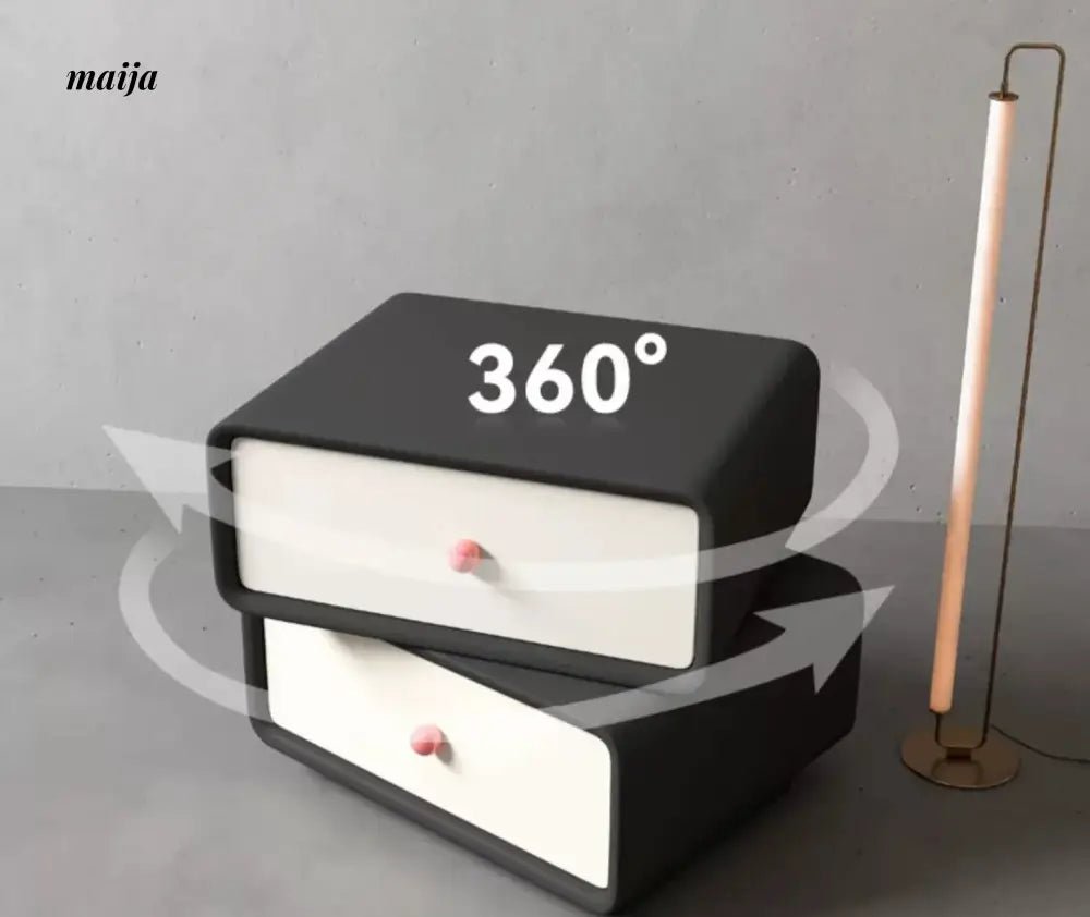 Innovative Design: This bedside table boasts a 360-degree rotating upper locker, allowing you to access your items easily and adjust the table’s shape to suit your needs. The rotation functionality adds a playful and practical element to its design.
