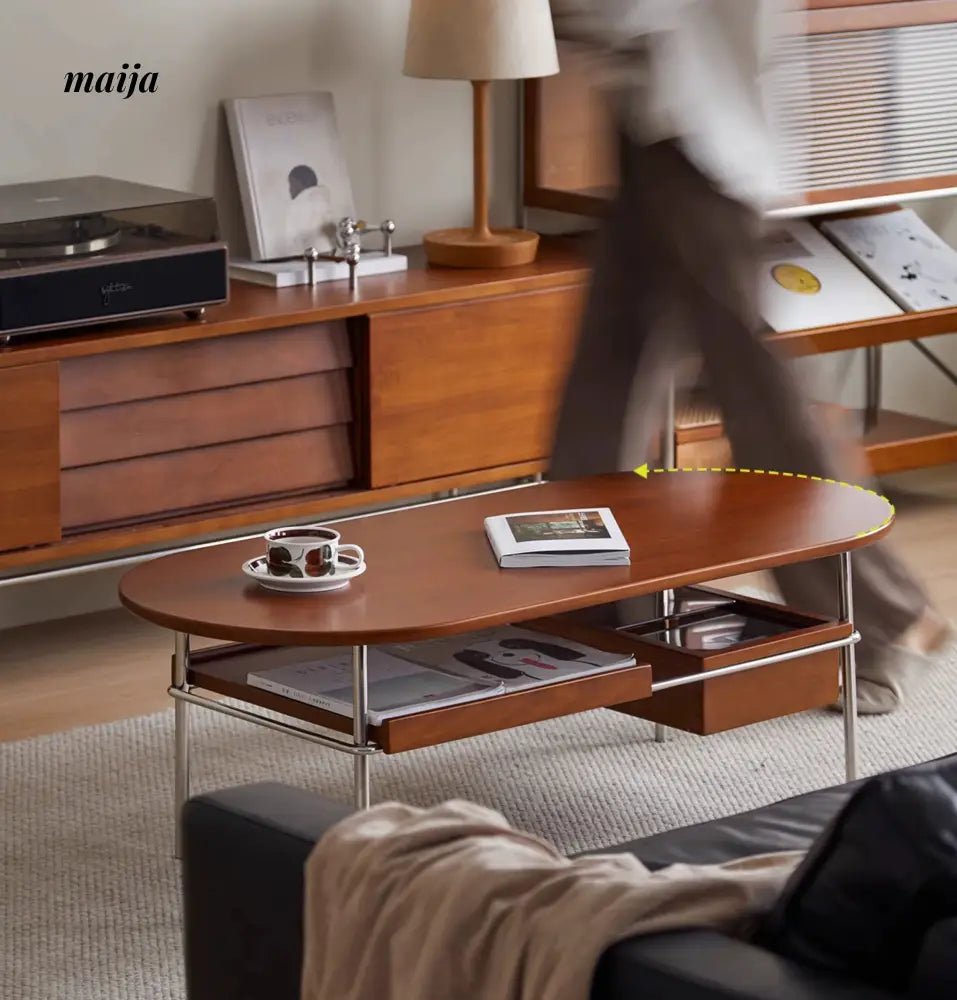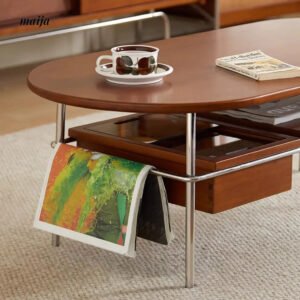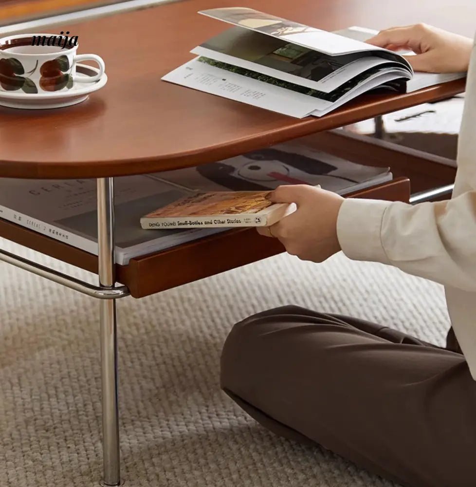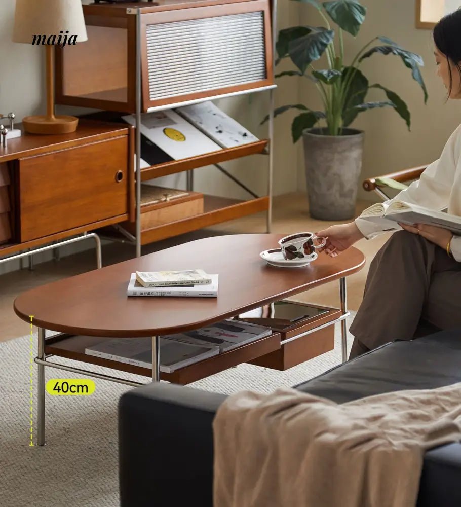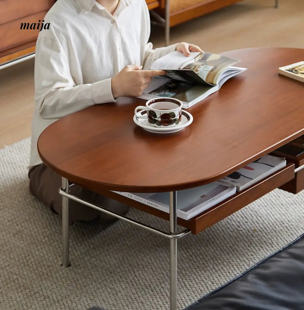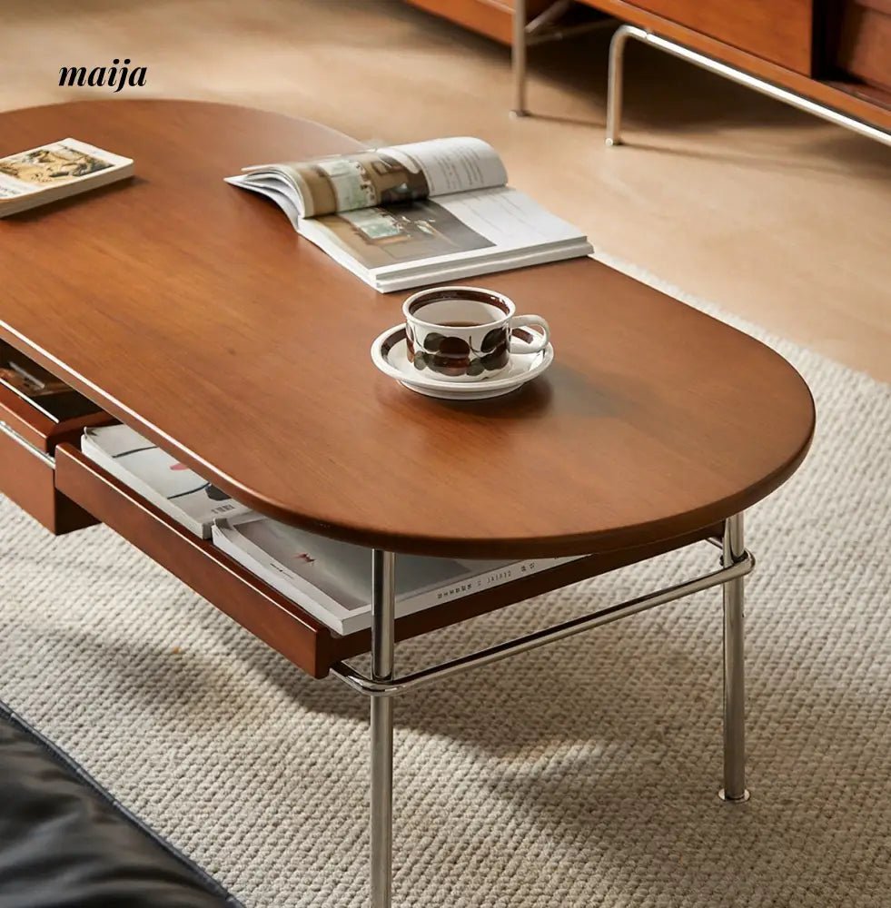 - Begin your journey with the Elizabeth Coffee Table, a testament to the sophistication of retro style, enhanced by the durability and unique texture of carefully selected wood. MUU’s commitment to quality is evident in every aspect of this coffee table, from its design to its functionality.