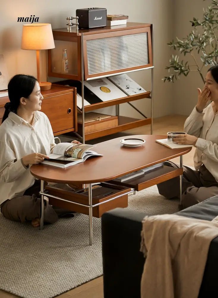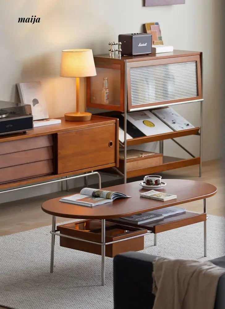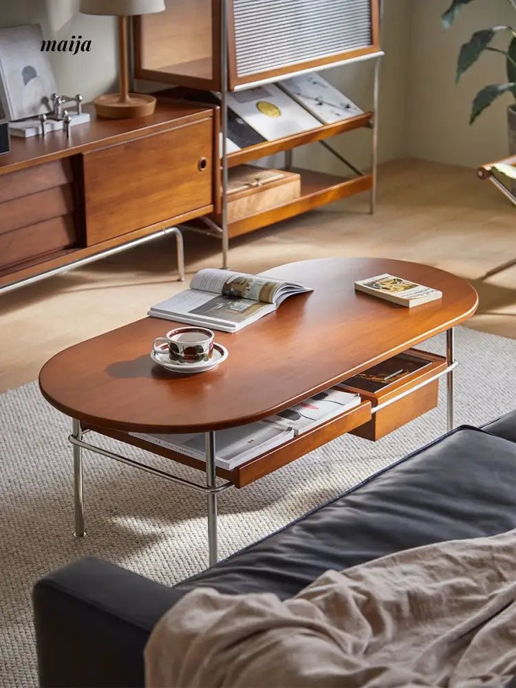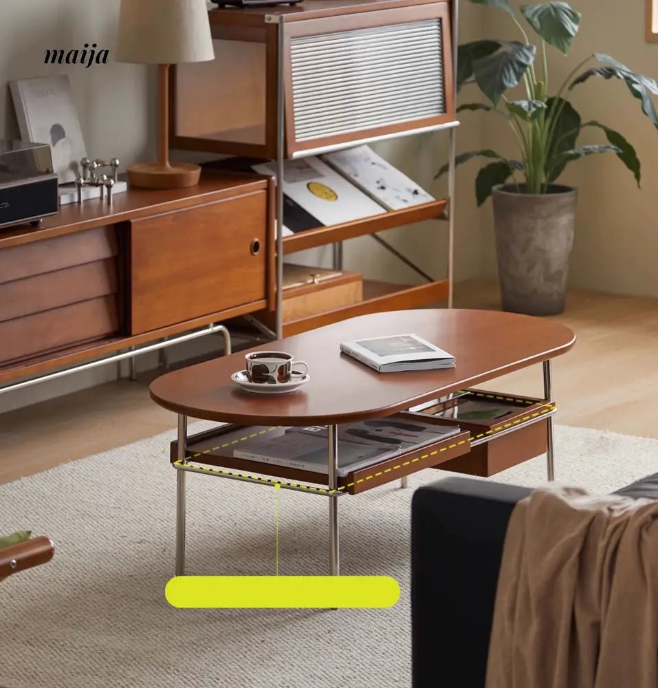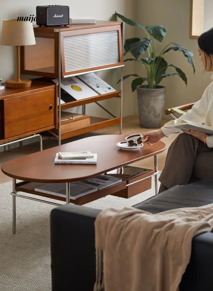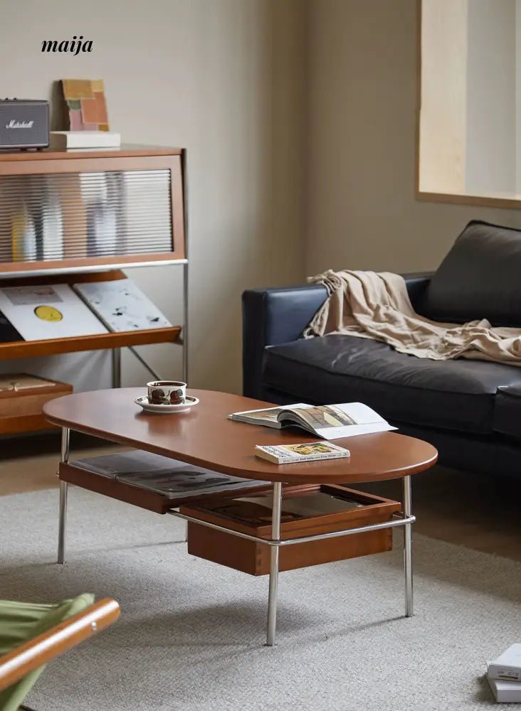 - Begin your journey with the Elizabeth Coffee Table, a testament to the sophistication of retro style, enhanced by the durability and unique texture of carefully selected wood. MUU’s commitment to quality is evident in every aspect of this coffee table, from its design to its functionality.