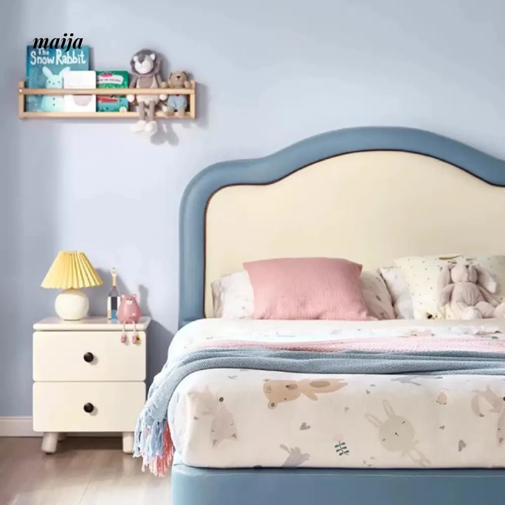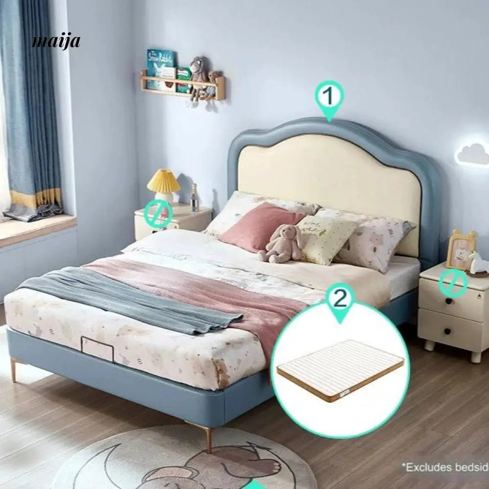 The bed features a high-quality sponge-filled backrest, providing a soft and soothing experience for your child. The solid wood frame ensures lasting durability, supporting even the most active kids as they jump and play.