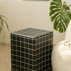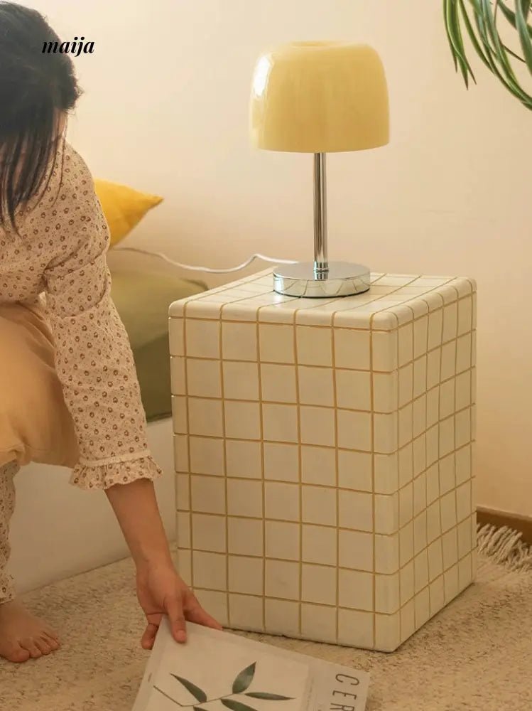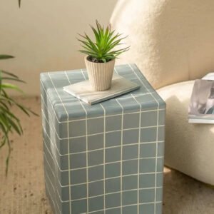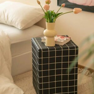Designed with a timeless plaid pattern, this exquisite piece is made from premium materials, ensuring durability and a weight of approximately 11KG. The Maizie Bedside Table stands at an ideal height of 46cm, offering a spacious top surface of about 33cm in width to accommodate your bedside essentials with grace.
